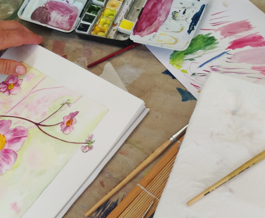 Aquarelltechniken, Licht- und Schatten, Perspektive.