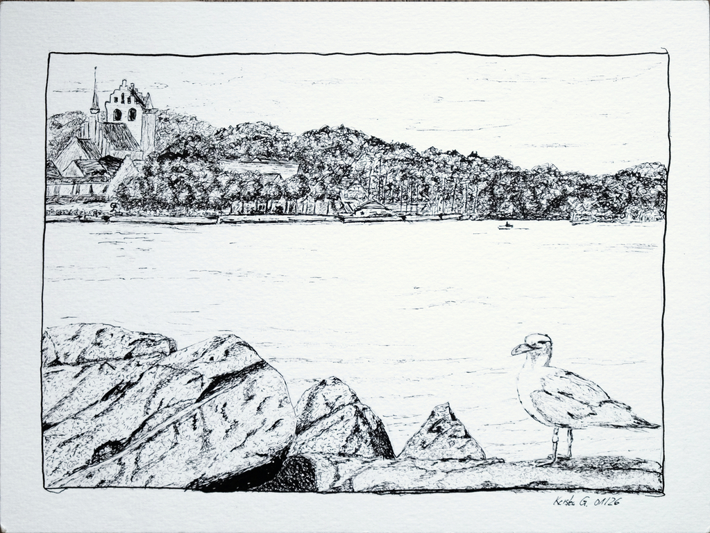 Aquarelle und Tuschzeichnungen mit Motiven aus Dänemark.